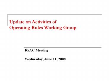 <Notice: Removed> Update on Activities of Operating Rules Working Group PowerPoint PPT Presentation