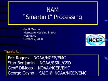 NOAA/ESRL/GSD Geoff DiMego NOAA/NCEP/EMC George