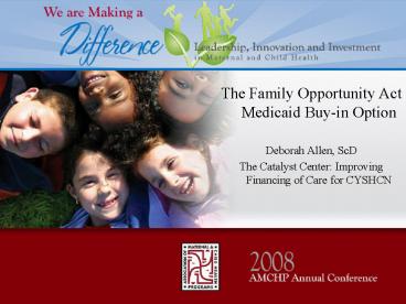 Title: The Family Opportunity Act Medicaid Buyin Option