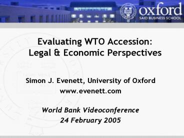 of the impact of WTO accession on trade. - Need new approaches to assess the impact of WTO