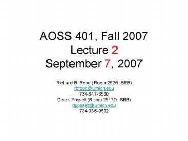 <Notice: Removed> AOSS 401, Fall 2007 Lecture 2 September 7, 2007 PowerPoint PPT Presentation