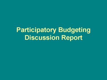 Participatory Budgeting Discussion Report PowerPoint PPT Presentation