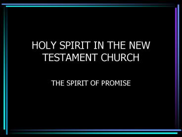 HOLY SPIRIT IN THE NEW TESTAMENT CHURCH PowerPoint PPT Presentation