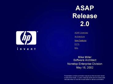 <Notice: Removed> ASAP Release 2.0 PowerPoint PPT Presentation