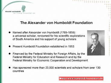The Alexander von Humboldt Foundation PowerPoint PPT Presentation