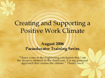 <Notice: Removed> Creating and Supporting a Positive Work Climate PowerPoint PPT Presentation