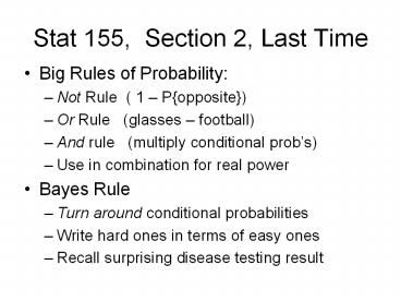 Title: Stat 155, Section 2, Last Time