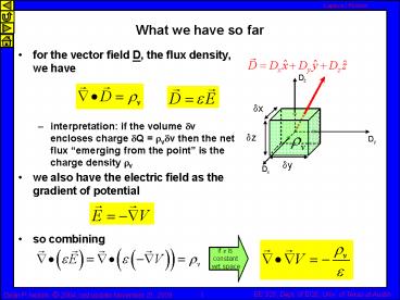 point is the charge density rv - we also have the electric field as the gradient
