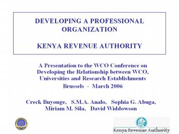 DEVELOPING A PROFESSIONAL ORGANIZATION KENYA REVENUE AUTHORITY PowerPoint PPT Presentation