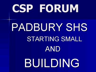 WHAT WE ARE ALREADY DOING AT PADBURY