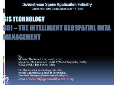 Title: GIS TECHNOLOGY SDI THE INTELLIGENT GEOSPATIAL DATA MANAGEMENT