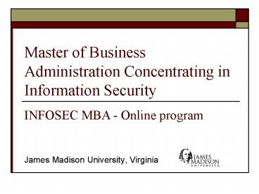 Master of Business Administration Concentrating in Information Security PowerPoint PPT Presentation