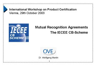 Title: Mutual Recognition Agreements The IECEE CBScheme