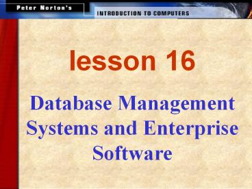 based on a DBMS, used by a large organization. - Enterprise software can meet the needs of many