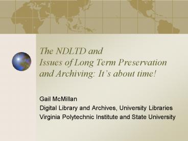 Title: The NDLTD and Issues of Long Term Preservation and Archiving: It
