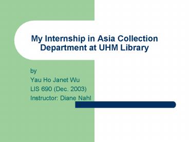 My Internship in Asia Collection Department at UHM Library PowerPoint PPT Presentation