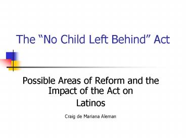 The No Child Left Behind Act PowerPoint PPT Presentation
