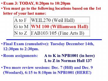 L to Z in Norman Hall 137 - Two more review sessions Dec. 7 (Hill) and Dec.