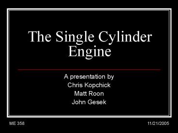 The Single Cylinder Engine PowerPoint PPT Presentation