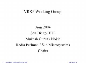• VRRP for IPv4 is Draft Standard now (RFC 3768)