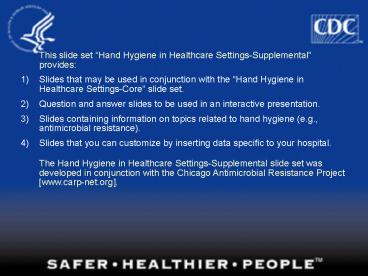 to hand hygiene (e.g., antimicrobial resistance). - Slides that you can customize by inserting data