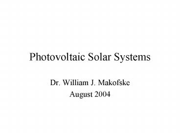 Title: Photovoltaic Solar Systems