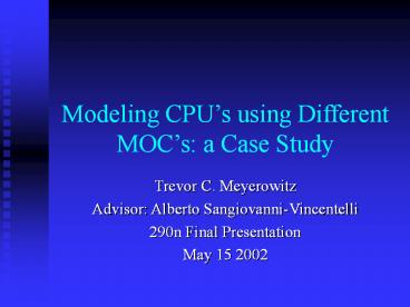 1Modeling CPUs using Different MOCs a Case Study