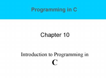 Introduction to Programming in C PowerPoint PPT Presentation