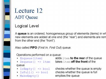 Dequeue(ItemType item) NodeTypeltItemTypegt