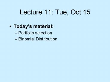 Lecture 11: Tue, Oct 15 PowerPoint PPT Presentation
