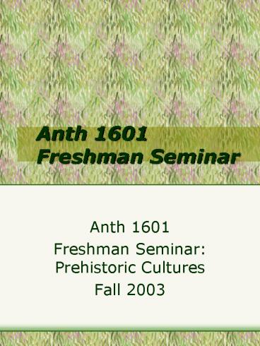 Anth 1601 Freshman Seminar PowerPoint PPT Presentation
