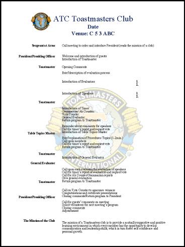 Title: ATC Toastmasters Club Date Venue: C 5 3 ABC