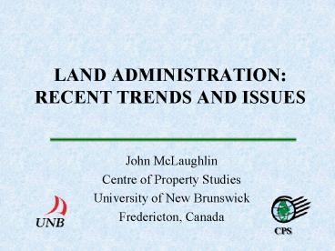 Title: LAND ADMINISTRATION: RECENT TRENDS AND ISSUES