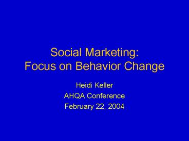 Social Marketing: Focus on Behavior Change PowerPoint PPT Presentation
