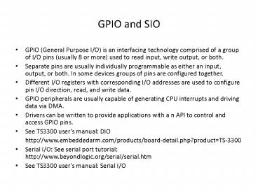 GPIO and SIO PowerPoint PPT Presentation