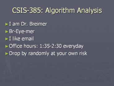 <Notice: Removed> CSIS-385: Algorithm Analysis PowerPoint PPT Presentation
