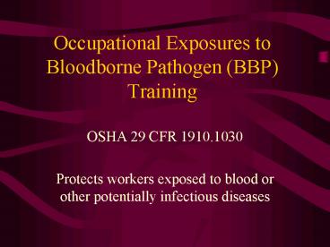Occupational Exposures to Bloodborne Pathogen BBP Training PowerPoint PPT Presentation