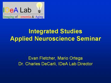 <Notice: Removed> Integrated Studies Applied Neuroscience Seminar PowerPoint PPT Presentation