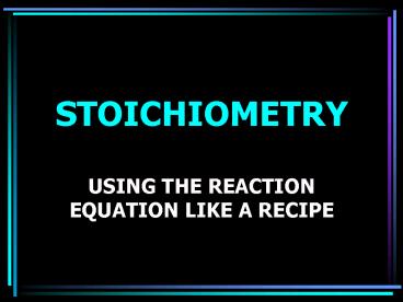 - USING THE REACTION EQUATION LIKE A RECIPE