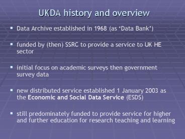<Notice: Removed> UKDA history and overview PowerPoint PPT Presentation