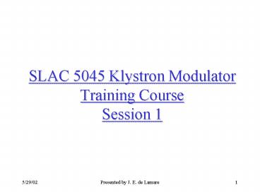 Title: SLAC 5045 Klystron Modulator Training Course Session 1