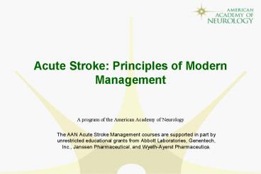 <Notice: Removed> Acute Stroke: Principles of Modern Management PowerPoint PPT Presentation