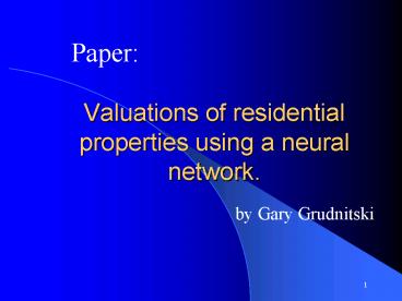 Valuations of residential properties using a neural network' PowerPoint PPT Presentation