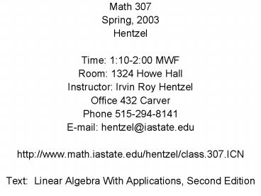 <Notice: Removed> Math 307 PowerPoint PPT Presentation