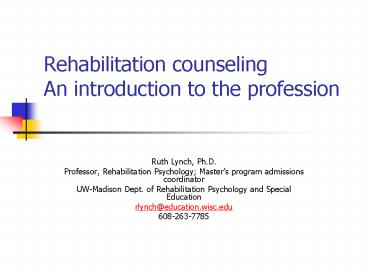 Rehabilitation counseling An introduction to the profession PowerPoint PPT Presentation