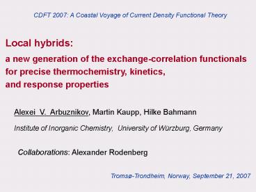 Alexei V. Arbuznikov, Martin Kaupp, Hilke