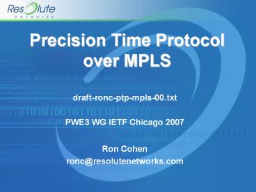Precision Time Protocol over MPLS PowerPoint PPT Presentation