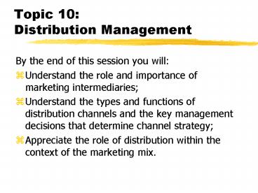 Title: Topic 10: Distribution Management