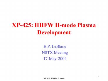 XP-425: HHFW H-mode Plasma Development PowerPoint PPT Presentation