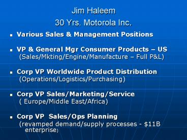 Jim Haleem 30 Yrs' Motorola Inc' PowerPoint PPT Presentation